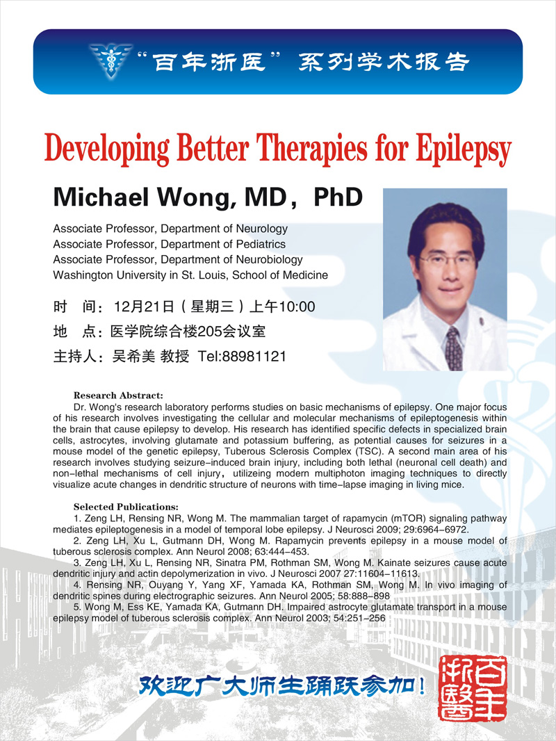 百年浙医系列学术报告——Michael Wong教授学术报告