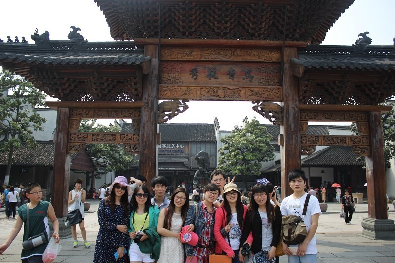 时维五月,序属暮春。4日早晨,浙医二院2012级硕士班同学30余人在班委会组织下游览乌镇。杭城山水都看尽,乌镇今始为君开。当日天朗气清,惠风和畅。同学们兴致勃勃,寻幽探古,尽情享受古镇的气息。乌镇地接苏杭,物阜民丰,素以“鱼米之乡,丝绸之府”闻名遐迩。她人杰地灵,才人辈出。远如六朝沈约,近如民国矛盾,乌镇人风骚独领,生命不息。市河穿镇而过,把乌镇分列南北。临河筑街,以岸为市;水市互依,浑然一体。两岸店铺林立,商旅如织。乌镇自古繁华,于今可见一斑。乌镇景致多以白墙黑瓦,小桥流水,相映成趣;加之点缀其间的绿荫,一幅绢丝的江南水墨图沁人心脾。雕梁画栋,彰显千年古韵;亭台楼阁,诉说昔日辉煌。同学们三五成群,或走访古迹名胜,或徜徉商肆人家,或荡漾短棹轻舟。看巷陌斜阳,闻橹声唉乃,醉然其间。当晚同学们安顿完毕,夜游乌镇。乌镇夜景,自然与白天不同。水灯相映,浮光跃金,一派辉煌气象;至于寂寥石巷,灯火阑珊,人约黄昏,亦别有一番滋味。作家陈运和赞道,“一个现代文明影响不大的世界, 一张古老色彩依然浓重的史页”。乌镇啊乌镇,一幅重彩浓墨的水乡画卷,深印在大家的记忆中,在回程的大巴上慢慢地回味,久久地淡不下去……