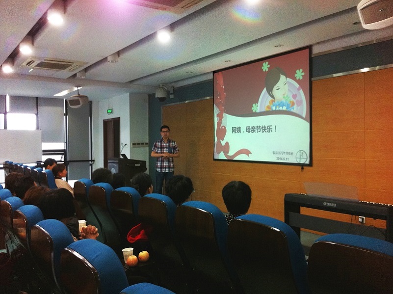 今天,2014年5月的第二个星期日,是一个赞美和感恩母亲的节日——母亲节。尽管窗外阴雨绵绵,天色阴沉,给人带来凄清寂寥之感,但屋内却是一派灯火通明、暖意融融的景象。临床医学1105班的同学们共聚医学综合楼205,向保洁阿姨们送去母亲节的祝福。