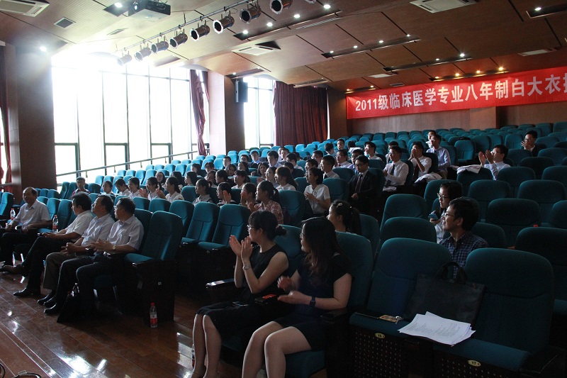 学院领导的谆谆教导鼓舞了在场的每一位学生,整个白大衣授予仪式庄重而又神圣,让2011级临床医学八年制学生真正领悟了自己接下来的人生理想和追求。这是他们迈出的漫漫医学路的第一步,相信他们必将汗水化作动力,勤思、好学、追求卓越、用努力拼搏实践自己的医学梦。