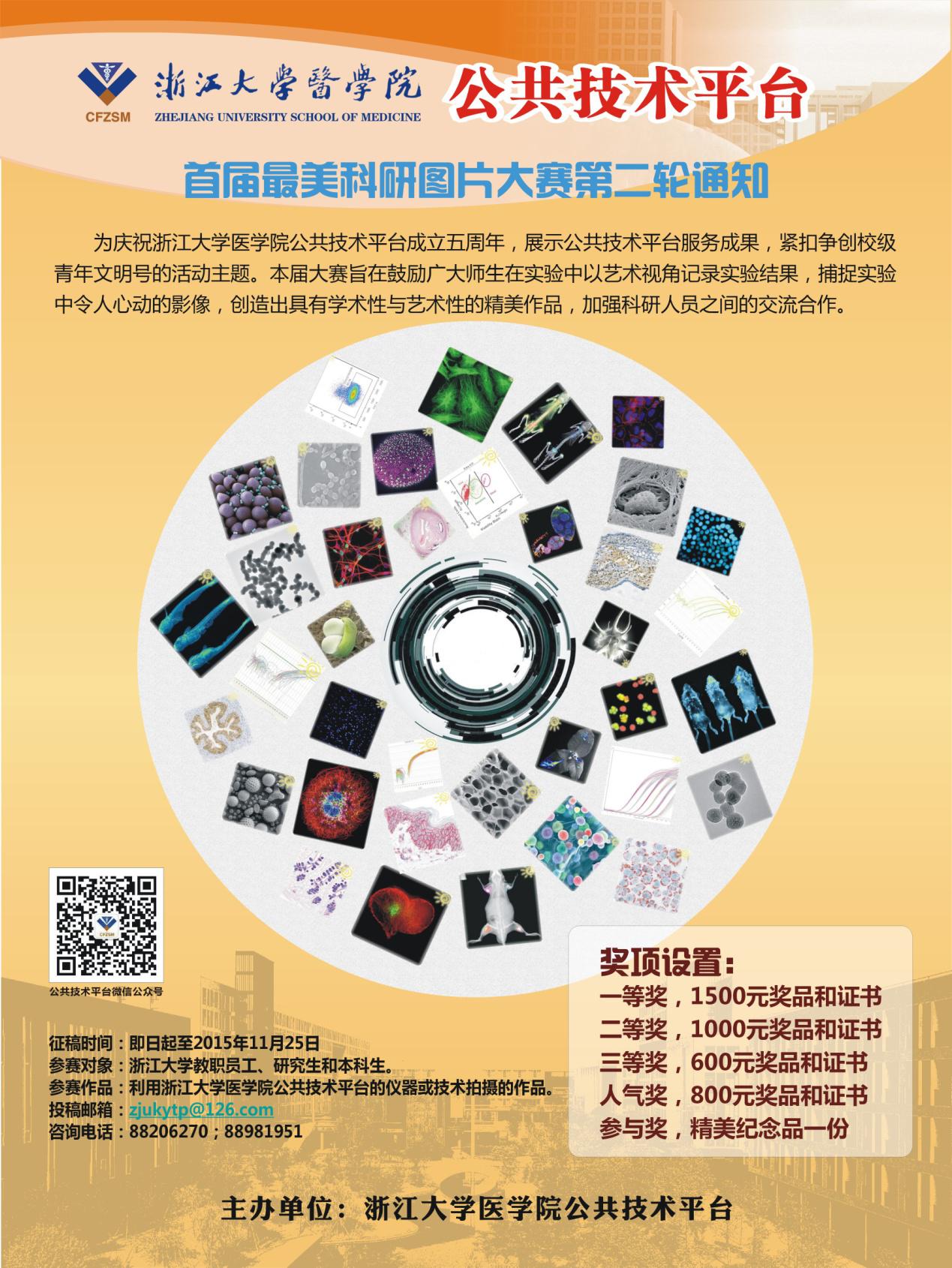 更多参赛者请准确填写《最美科研作品报名表》,文件名为单位+姓名+作品名称+手机号,参赛作品于11月25日前发送作品到zjukytp@126.com;详请咨询88206270/88981951;大赛动态请关注医学院公共平台微信公众号及医学院公共技术平台官方网站:
