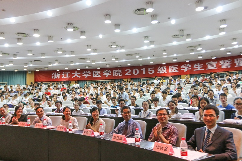 2016年6月12日晚,医学院2015级医学生宣誓暨白大褂授予仪式在紫金港校区蒙民伟楼225报告厅隆重举行。医学院副院长、附属第一医院院长、2015级新生之友代表王伟林教授、医学院党委副书记陈周闻老师、医学院团委/学工办、教学办相关老师、班主任和2015级全体医学生一起出席了本次活动。仪式由学工办副主任杜悦主持。