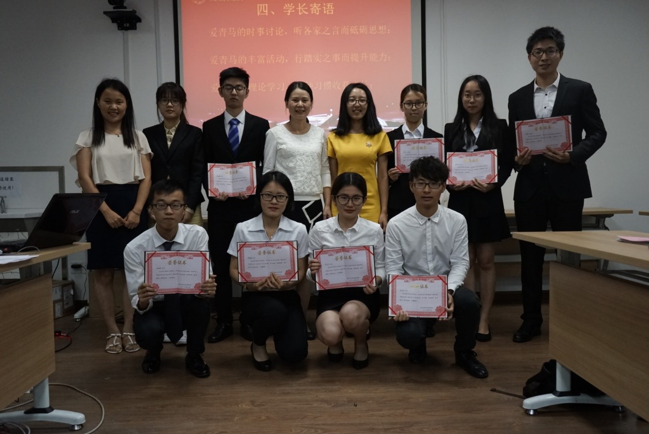 工作汇报结束,医学院第八期青马工程培训班正式结业。杜悦老师宣读了八期青马成员结业名单并为九位八期青马结业成员颁发了结业证书。会议最后,第九期青马成员进行了自我介绍,短短几分钟,展示了九位同学丰富的组织社团经历,优秀的沟通领导能力同时也表达了在青马学院这个平台中认识更多的优秀人才,获得更多的成长的意愿机会的希望。